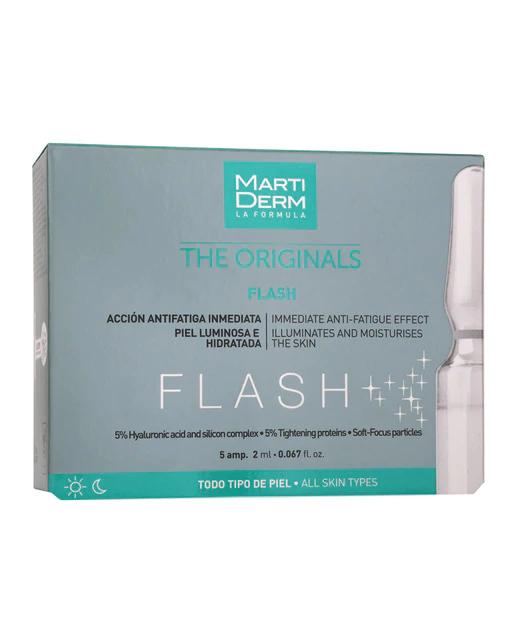 Las Ampollas Antifatiga Flash Martiderm actúan instantáneamente borrando los signos de cansancio y estrés. También hidratan y reafirmas todas las pieles gracias al ácido hialurónico y al silicio. Sus proteínas de origen vegetal con efecto tensor reducen la rugosidad del rostro, proporcionando inmediatamente una piel más suave y creando un film elástico remodelante.