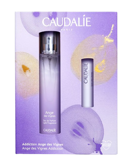 En este cofre encontrarás el Eau de Parfum Ange des Vignes (50 ml) y, de regalo, el Tratamiento para Labios Vinotherapist™ (4,5 g). Voluptuosa y chispeante a la vez, la fragancia chipre del perfume exhala notas afrutadas de uva y frambuesa, matices ligeros de neroli y un fondo envolvente de pachuli. Entre el cielo y las vides, una brisa celeste, cautivadora y sensual. El Tratamiento para Labios Vinotherapist™, enriquecido con aceite de pepitas de uva nutritivo, protege y calma los labios secos a largo plazo. Su textura se funde al instante sin dejar efecto graso, aportando hidratación duradera. Además, su delicado perfume de naranja dulce con un toque avainillado perfuma sutilmente los labios, que permanecen protegidos durante todo el día.