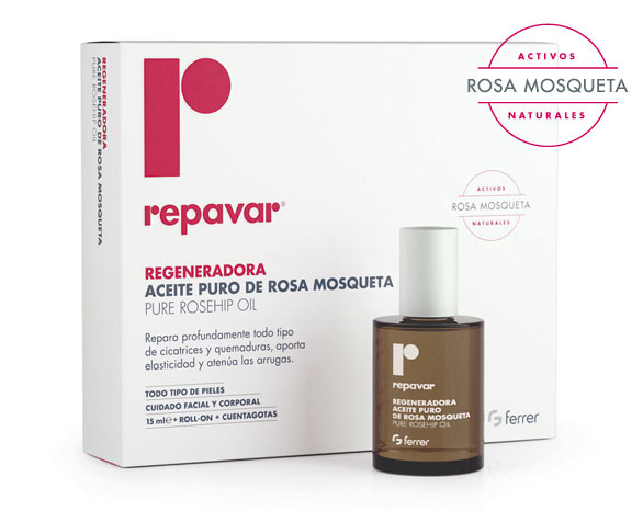 El aceite puro de Rosa de Mosqueta Repavar es especialmente indicado para el tratamiento de cicatrices, quemaduras, arrugas, descamaciones y manchas, ayudando a la piel a renacer desde sus capas más profundas.
